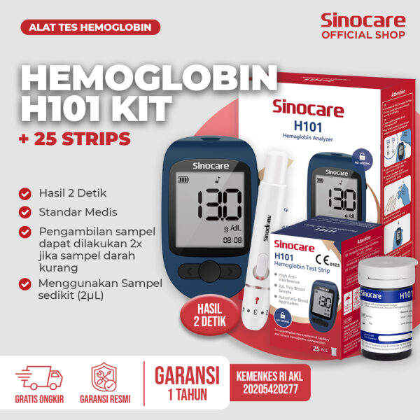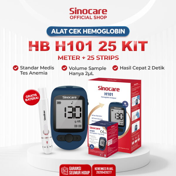 Alat Cek HB Hemoglobin Anemia Sinocare H101 Kit isi 25 Strip Hasil Super Cepat 2 detik & Sample darah sangat sedikit (2µL)