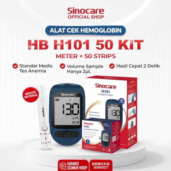 Alat Cek HB Hemoglobin Anemia Sinocare H101 Kit isi 50 Strip Hasil Super Cepat 2 detik & Sample darah sangat sedikit (2µL)