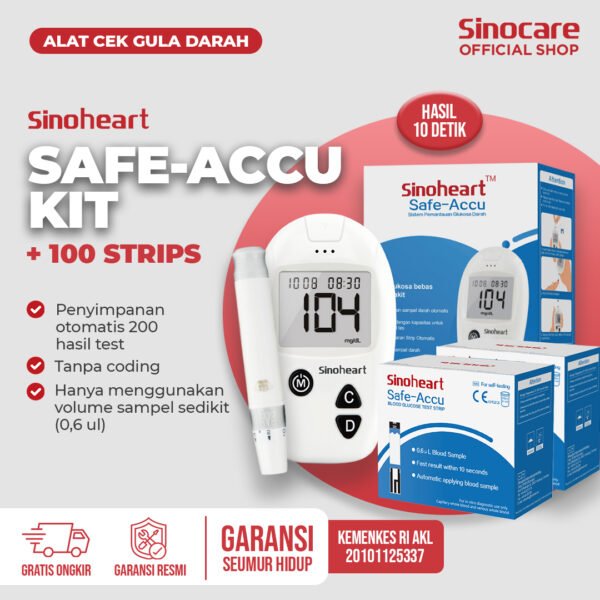 Alat Ukur Cek Gula Darah Instant Sinocare Safe-Accu 200 Memori (100 Strip)