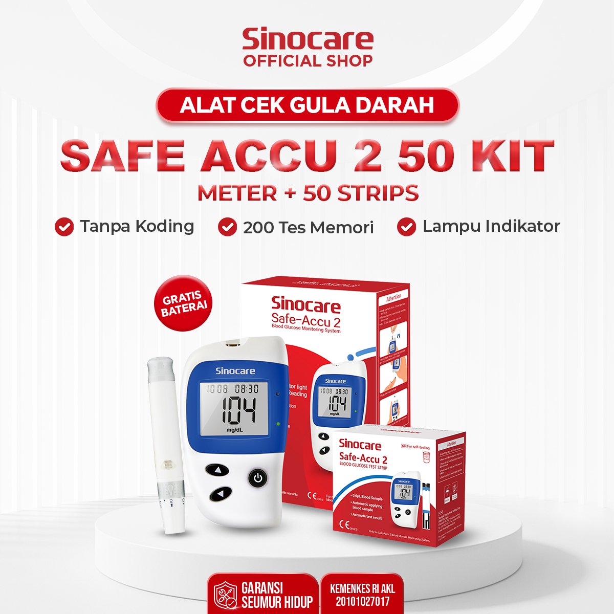 – 1 kotak strip uji gula darah Safe-Accu 2 (isi 50 strip expired May 2026)