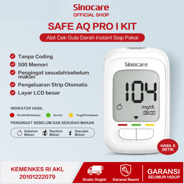 Alat Ukur Cek Gula Darah Instant Sinocare Safe AQ Pro 25 Kits Alat Tes Paket